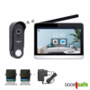 - Draadloze camera deurbel: De buiten-unit, gevoed door accu of stroom, verbindt volledig draadloos met het scherm, dat een stopcontact nodig heeft. Bij het indrukken van de knop op de buiten-unit rinkelt het scherm, kun je praten met de bezoeker en opnames maken.